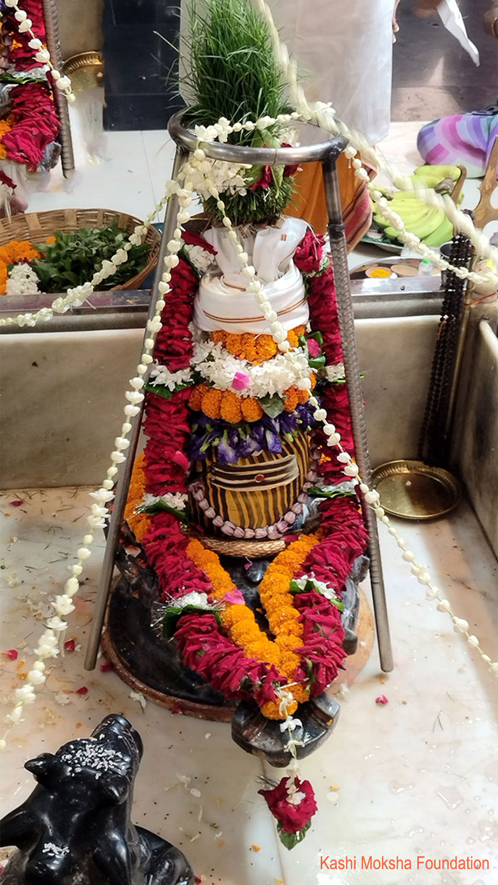 • Holy Liquids: Ganga Jal (holy water), sugarcane juice, coconut water, and rose water.